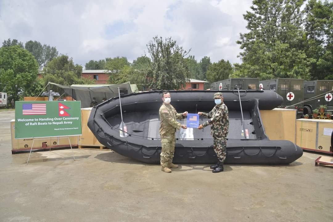 काठमाडौं । अमेरिकी सेनाले नेपाली सेनालाई जल उत्पन्न प्रकोपका समयमा उद्दारका लागि उपयोगी हुने ४ वटा रेस्क्यु बोट (उद्दार डुंगा) सहयोग गरेको छ । अमेरिकी राजदूताबास अन्तर्गत अफिस अफ डिफेन्स कोपरेसन (ओडीसी)का तर्फबाट डुंगा उपलब्ध भएको सैनिक जनसम्पर्क तथा सूचना निर्देशनालयले जनाएको छ ।
