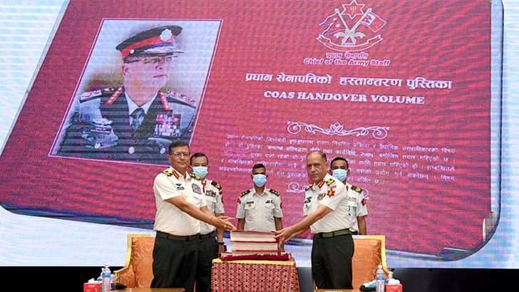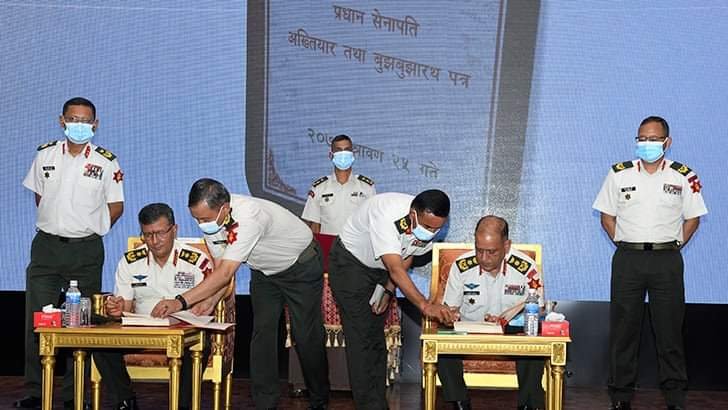 काठमाडौं । प्रधानसेनापति पूर्णचन्द्र थापाले नेतृत्व हस्तान्तरण गरेका छन् । सोमबार जंगी अड्डामा आयोजित कार्यक्रमकाबीच प्रधानसेनापति थापाले बलाधिकृत रथी प्रभुराम शर्मालाई नेतृत्व हस्तान्तरण गरेका हुन् ।