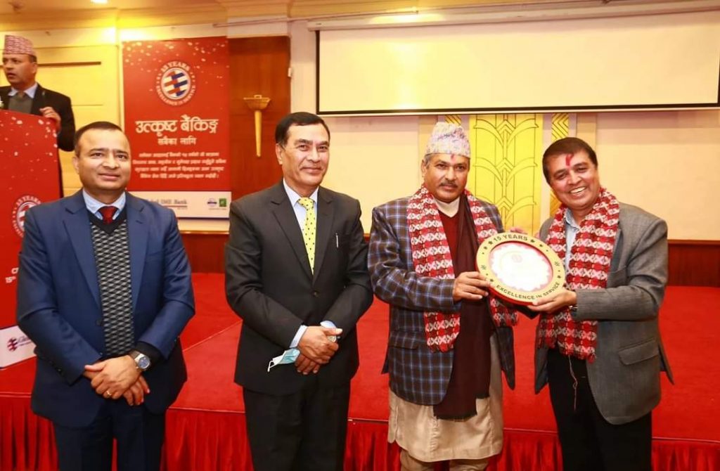 बैंक स्थापनाको १५ वर्ष पुरा भएको अवसरमा आयोजित कार्यक्रममा ढकाल सम्मानित पनि भएका छन्। उनलाई गभर्नर महाप्रसाद अधिकारीले सम्मान गरेका हुन्।ढकालले बैंकमा १५ वर्षदेखि निरन्तर सेवारत कर्मचारीहरुलाई सम्मान गरेका छन्।बैंकका प्रमुख कार्यकारी अधिकृत रत्नराज बज्राचार्यले बैंकले आफ्नो सेवालाई ग्राहकमैत्री बनाउँदै अहिलेको डिजिटल युगमा समयसापेक्ष सेवा दिनेगरी आफ्नो लक्ष्य निर्धारण गरेर बैंक अगाडि बढेको बताए।