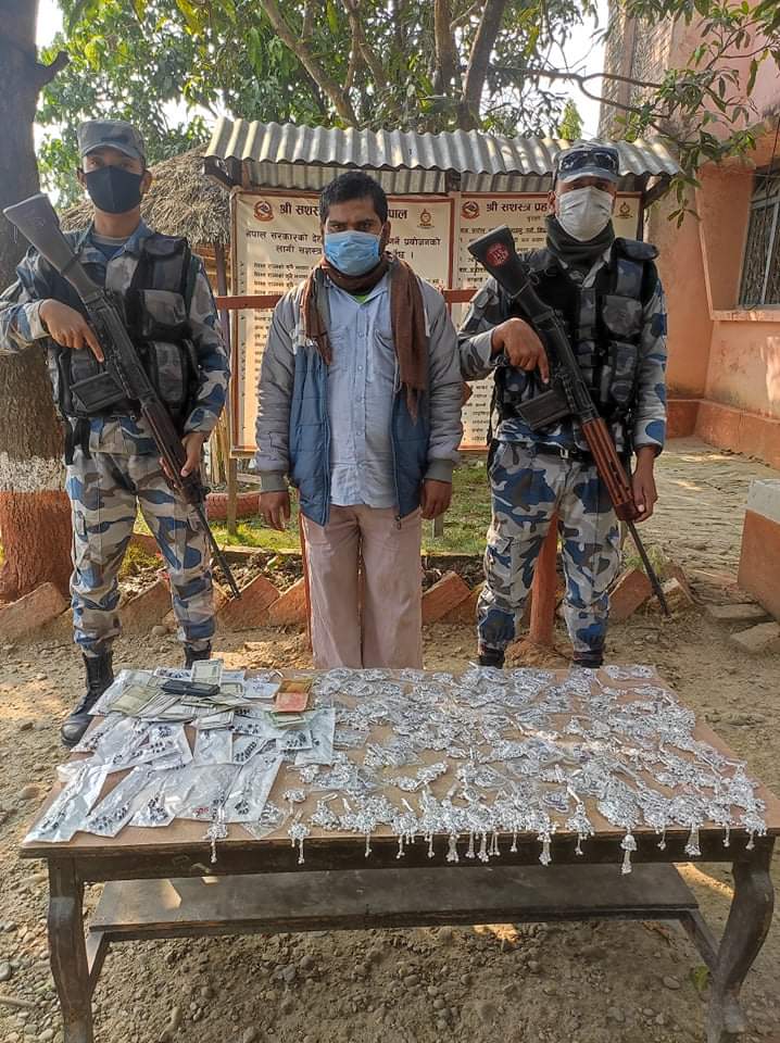 सशस्त्र प्रहरीको छिन्नमस्ता वाहिनी मुख्यालय बर्दिवास र नम्वर ७ गण हेड क्वाटर सिरहाबाट खटिएको विशेष टोलीले लहान नगरपालिका वडा नम्बर – ७ स्थित दुर्गामन्दिरबाट भारतको विहार राज्य, मधवनी जिल्ला, थाना राजनगर १२ का ३८ वर्षिय रन्जीत राय र उनको काका ६१ व्र्षिय लखन रायको साथबाट ३ किलो चाँदीको तयारी गहना र नगद २० हजार भारतीय रुपैयाँ ५ सय १० रुपैयाँ नेपाली रुपैयाँ मंगलबार अपान्ह बरामद गरेको हो ।